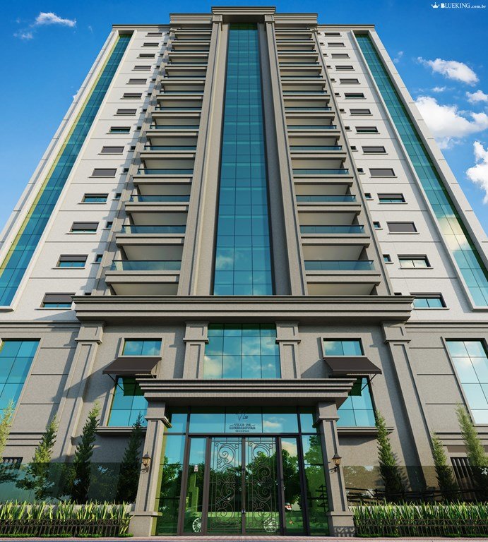 - Fachada neoclássica com detalhes em pele de vidro