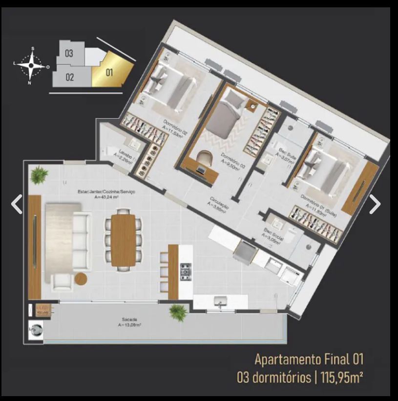 - Área Privativa: 115 m²