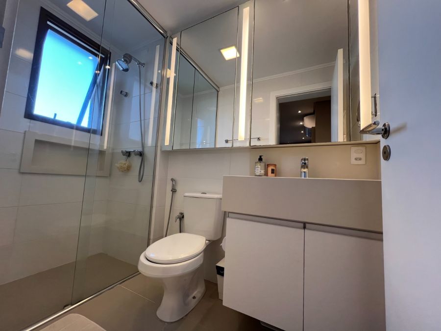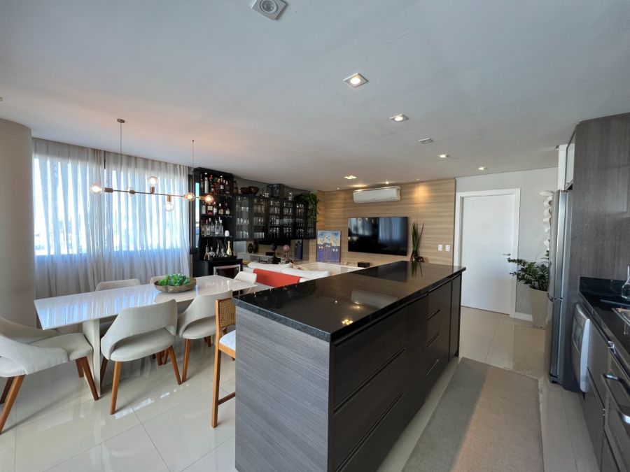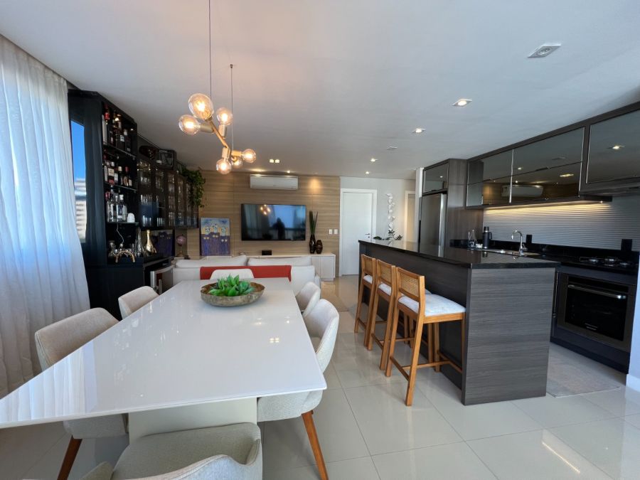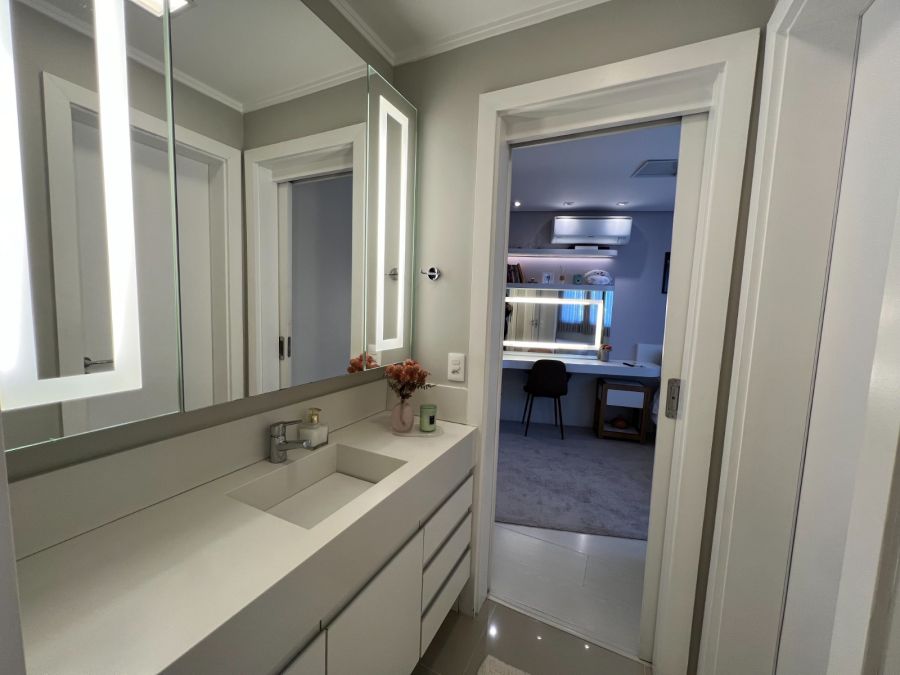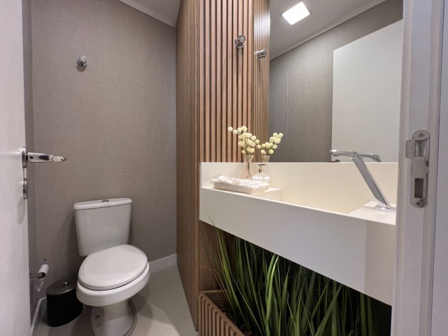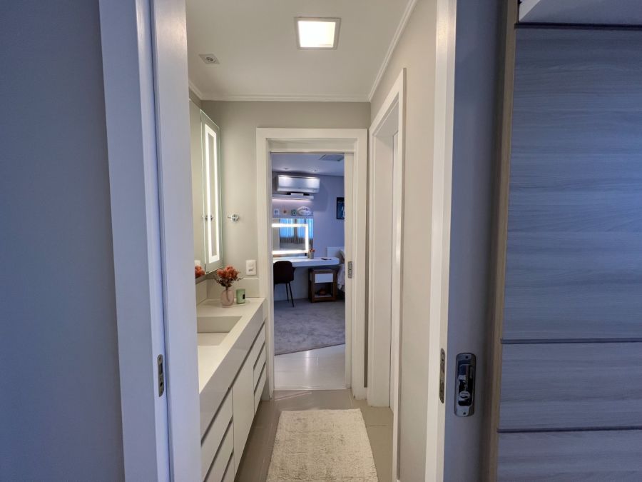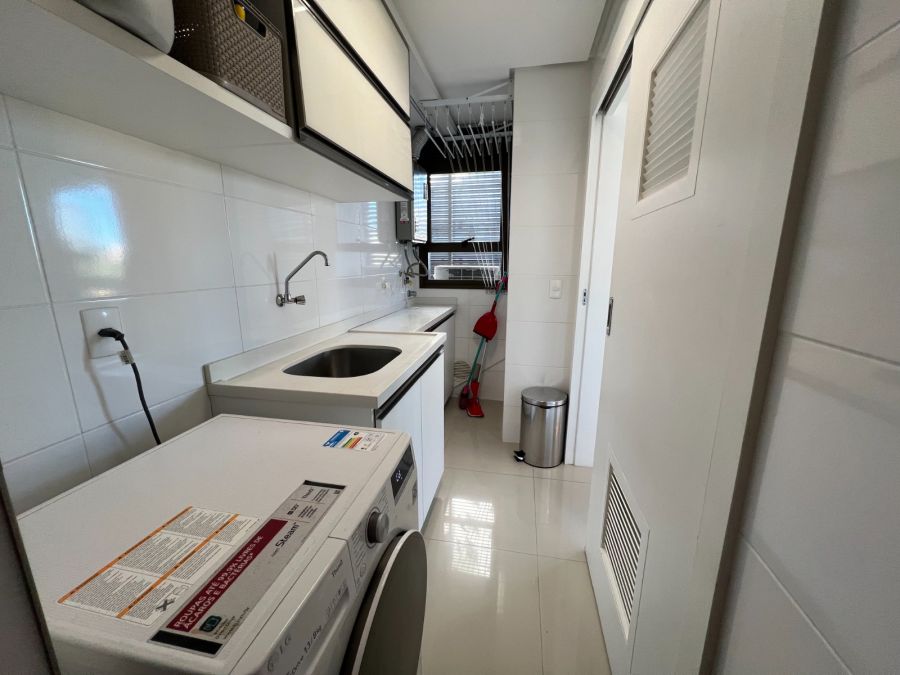 A varanda com churrasqueira oferece uma linda vista para o mar, trazendo ainda mais charme ao imóvel. O apartamento conta também com lavabo, cozinha funcional, área de serviço, hobby box e 2 vagas de garagem, ambas equipadas com carregador elétrico — uma comodidade ideal para quem pensa no futuro.