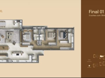 Apartamento à Venda com 3 dormitórios, sendo 3 suítes, 190m²