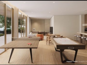 O living integrado proporciona amplitude e luminosidade, tornando o ambiente ideal para momentos de convivência. A sacada com churrasqueira a carvão acrescenta um toque especial para receber amigos ou simplesmente relaxar ao final do dia.
