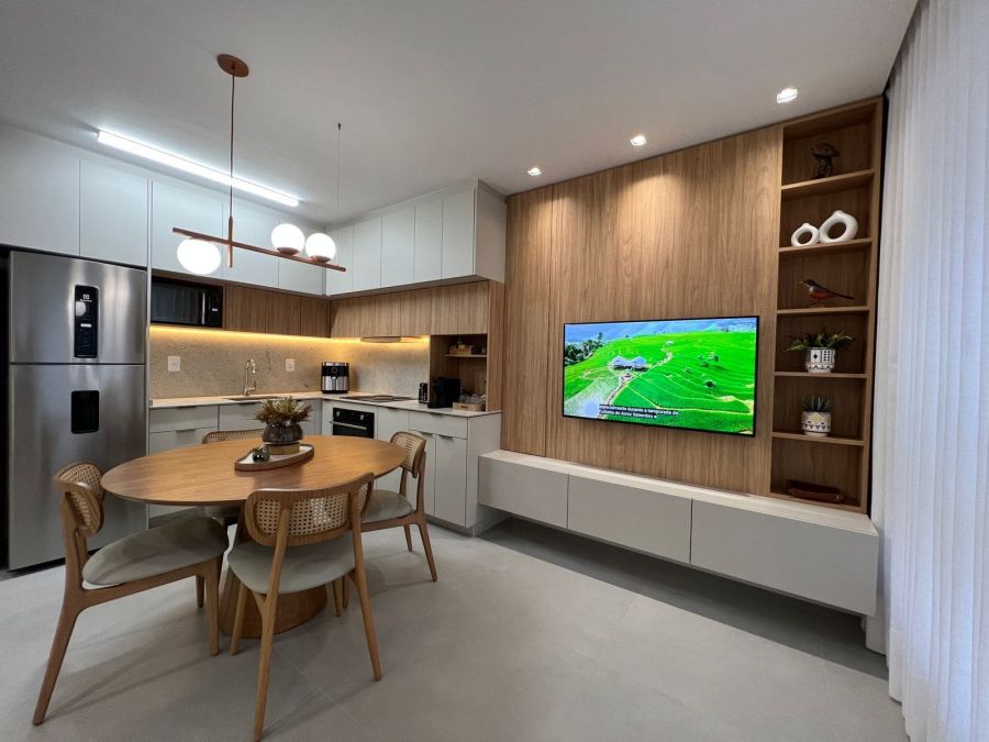 • Sala e cozinha integradas, proporcionando amplitude e praticidade;