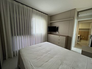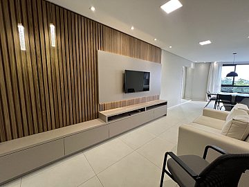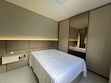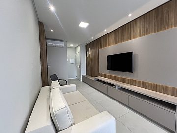 O imóvel conta com living integrado, lavabo, duas suítes e uma vaga de garagem, oferecendo um layout funcional e elegante. Totalmente mobiliado, equipado e climatizado, possui móveis planejados em todos os ambientes, garantindo sofisticação e ótimo aproveitamento dos espaços.